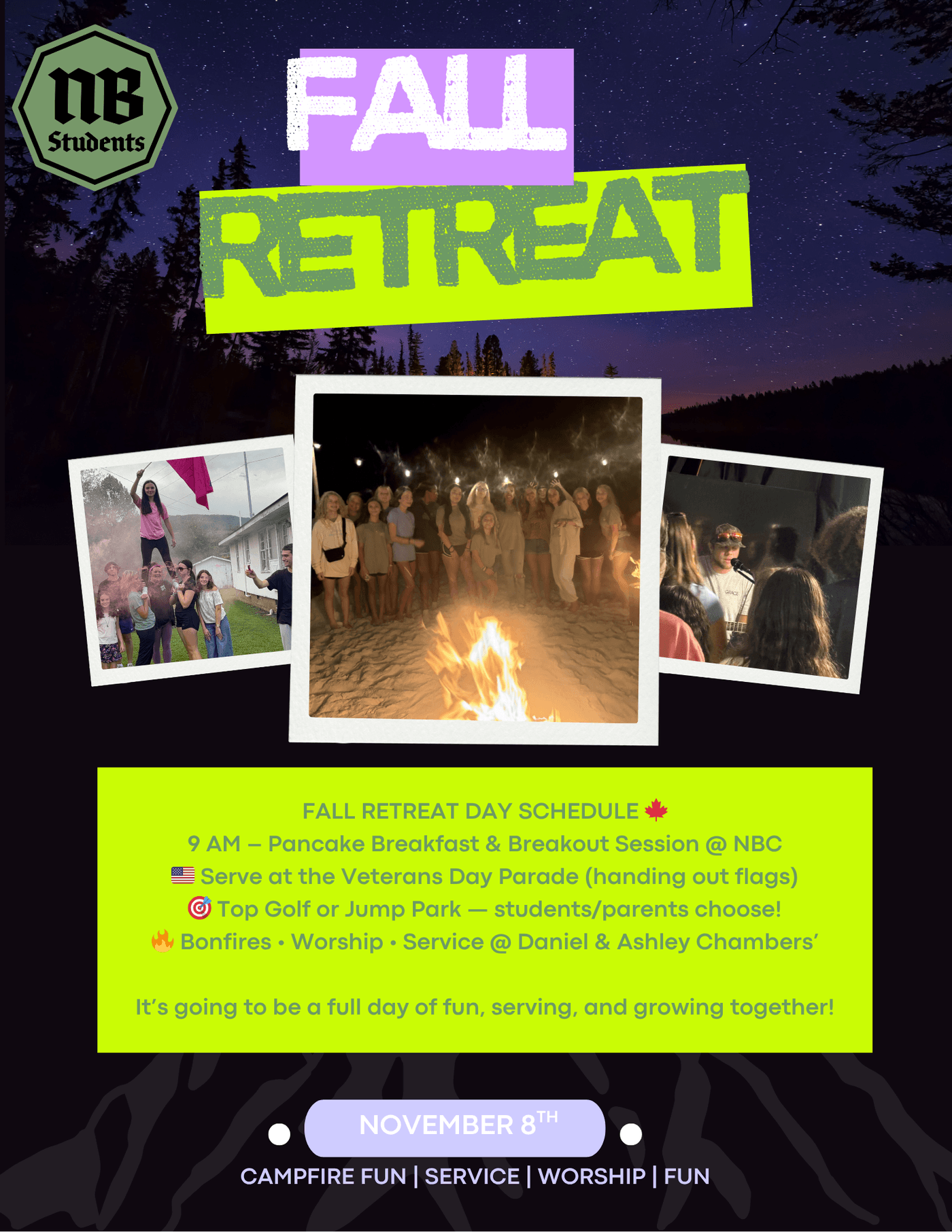 Here at NB Students we strive to create an inviting culture where you feel loved, safe, wanted & can develop new friendships all while growing in a deeper relationship with the Lord. We desire for you to not only GROW in the Lord, but ultimately to then GO back into your schools, sports, activities and with your friends to show them who Christ is to you. We would LOVE for you to join us!
