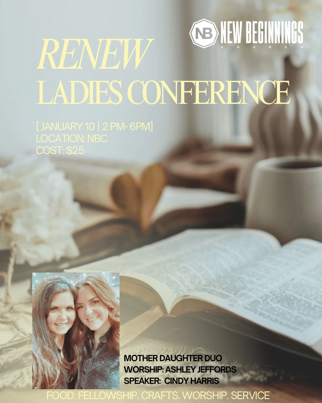 We invite you to join us for Renew Ladies Conference 2026 an afternoon designed to refresh your spirit and renew your heart through food, community, worship, and the Word.